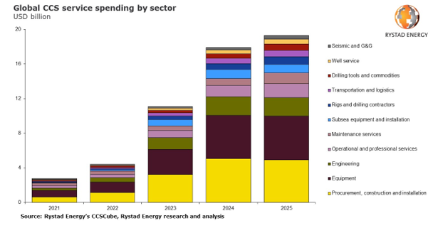 The momentum towards a sustainable future is palpable. Rystad Energy’s research paints a vivid picture of the burgeoning investments in the CCUS sector. Spending is projected to quadruple from 2022 to 2025, with cumulative global expenditure surpassing an astounding $50 billion over the next three years.