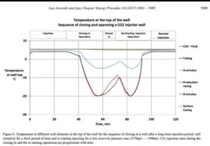 Carbon Capture and Storage requires captured CO2 to be pumped as a liquid down old oil and gas wells. Pumping the liquid CO2 into an empty reservoir below hydrostatic pressures a well would allow the liquid to “evaporate” at the top of the well, resulting in a large temperature drop. This Joule Thompson cooling effect varies with the effective remaining reservoir pressure. Over time this evaporation will reduce as reservoir